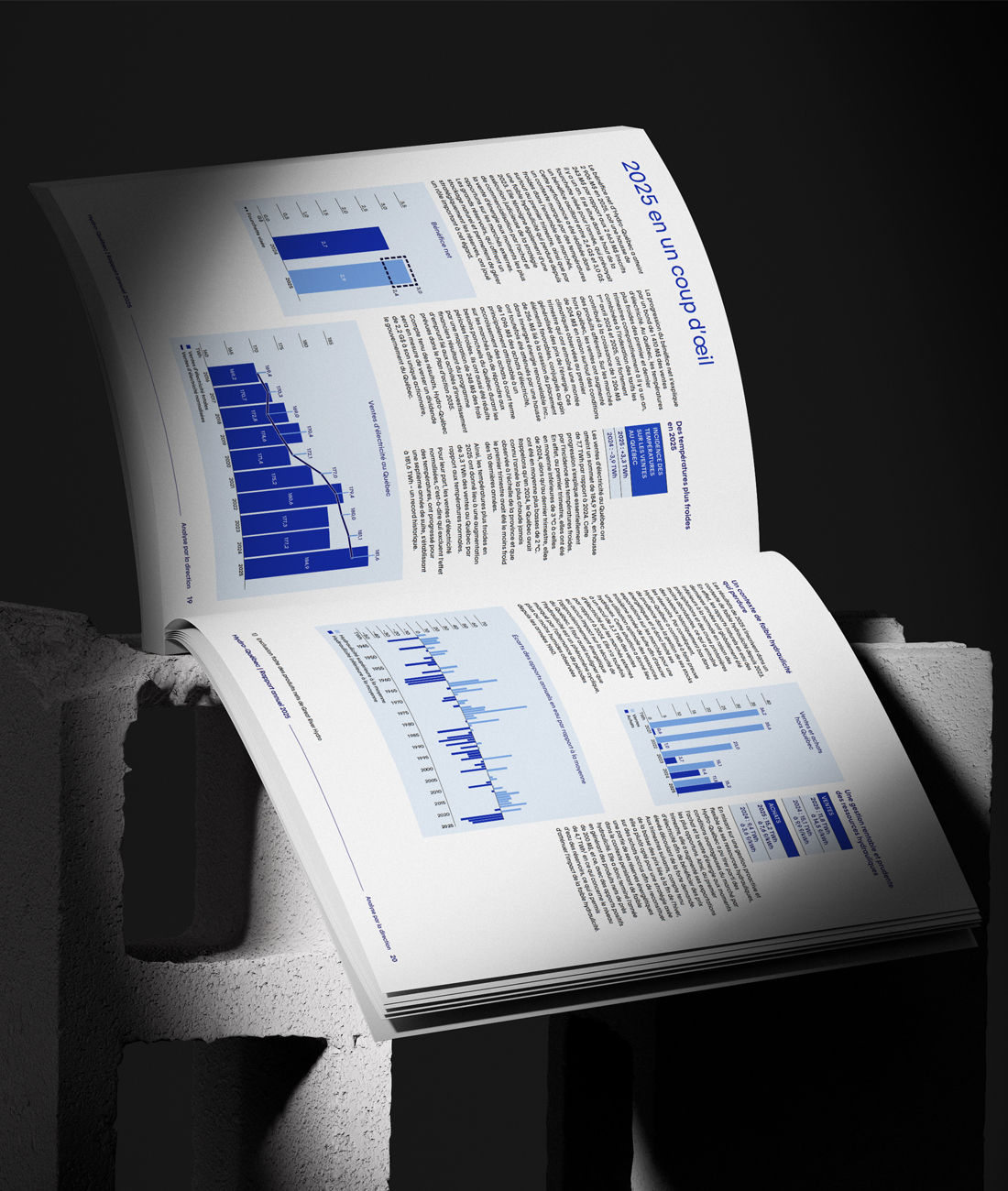 Logistec operates marine terminals throughout the St. Lawrence Valley, the Great Lakes, the Far North and Western Canada, as well as in the United States as far south as Louisiana. With over 2,300 employees, the company is a pioneer in logistics, handling and intermodal transport in the country. Their annual report therefore had to reflect the solidity and innovation of this fast-growing company.